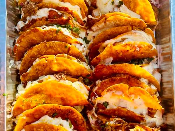 Let us cater your beef chuck roast and chicken breast birria taco tray - catering in New Braunfels, Seguin, & San Marcos - free delivery for catering - preorder now on our online menu!